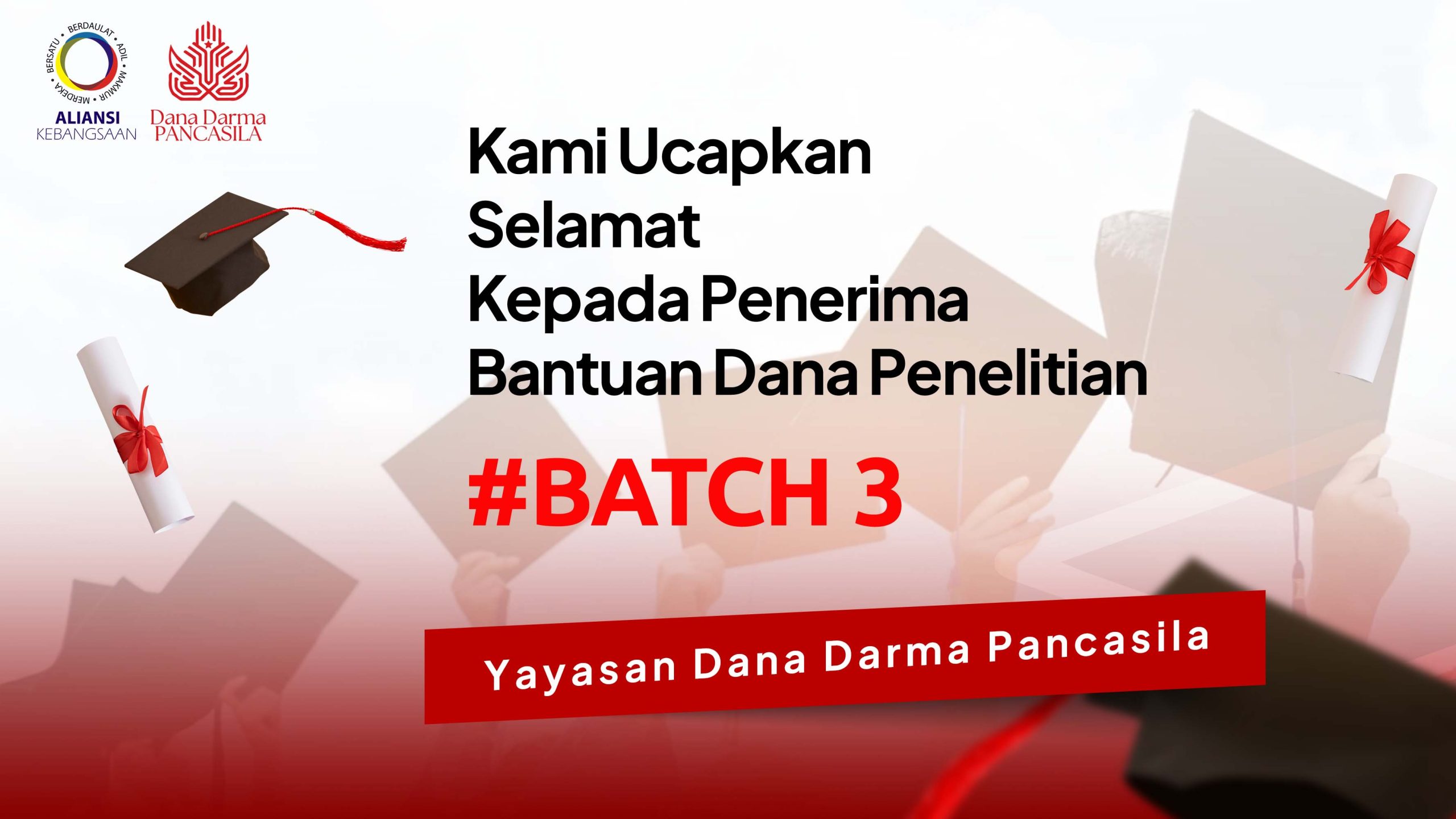 Berangkat dari kehendak untuk turut mengarusutamakan epistemologi Pancasila sebagai paradigma Pembangunan Nasional, Aliansi Kebangsaan mencoba mengambil bagian dengan meluncurkan inisiatif “Dana Darma Pancasila”. Inisiatif ini dimaksudkan untuk memberi bantuan dana penelitan dan kerja ilmiah dalam isu-isu yang terkait dengan Tiga Ranah Pancasila (tata nilai, tata kelola, tata sejahtera). Untuk pertama kali, bantuan ini diberikan kepada mahasiswa pasca-sarjana (S2 dan S3) yang akan melakakun penelitan untuk menulis tesis dan disertasi.
